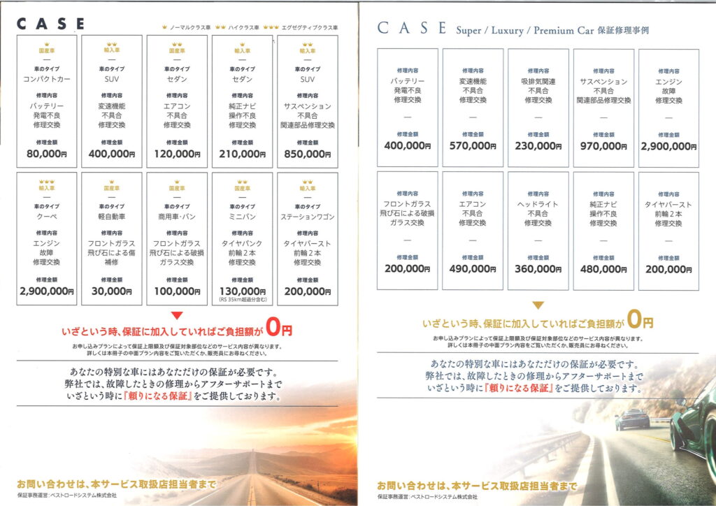 中古車を購入の際、1年以内に高額修理になったらどうしようとお悩みのかたにおすすめする保証サービスになります。
